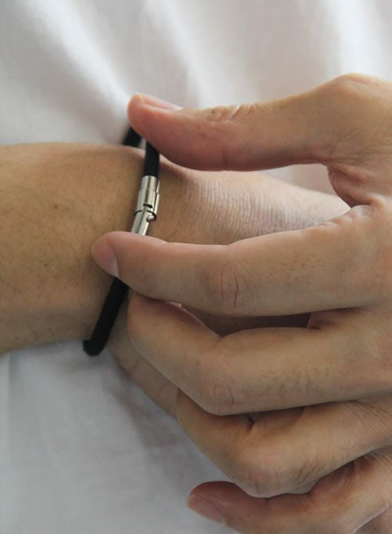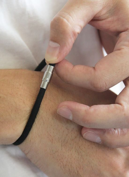素材:ジョイントパーツ/ステンレス、磁石 ゴム部分/自然放射線放出天然鉱石含有天然ゴム、 綿70%、レーヨン30%(柿渋含有繊維) 生産国:日本 水や汗に濡れても消臭効果やマイナスイオン効果に影響はありませんが、 ジョイントパーツに磁石が錆びる恐れがあるためパーツが濡れた場合はタオル 等でよく拭きとって下さい。