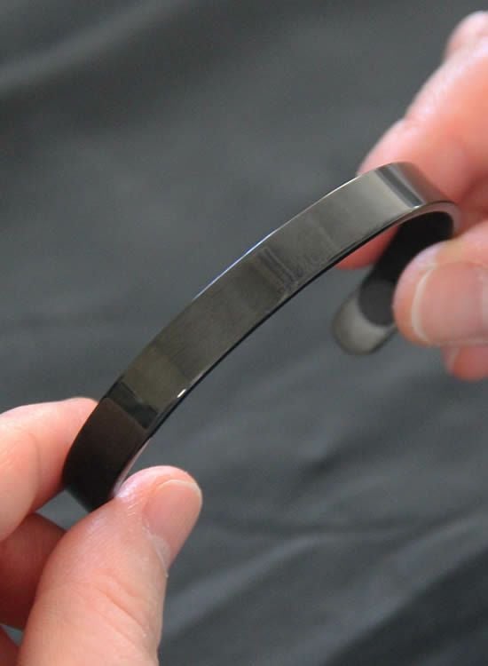 バングルなので本体の間口を広げたり狭くすることで若干のサイズ調整はできますが、