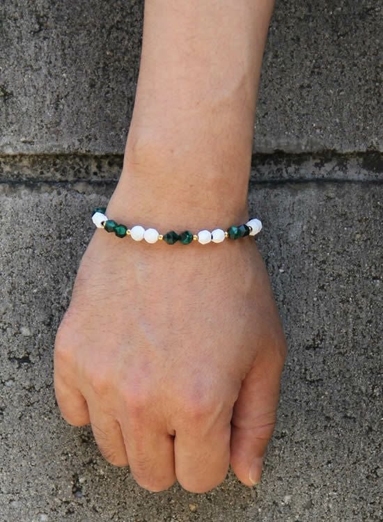サイズ:全長表記をしておりますが、多面体セラミックパーツの大きさが一定ではない為、5mm程前後いたします。写真のモデルは手首サイズ17㎝でMサイズ(21㎝)を着用しています。