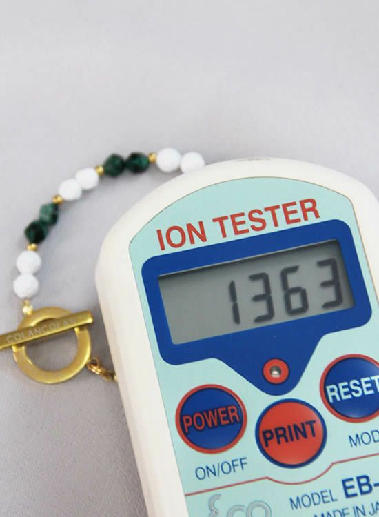 素材:ジョイントパーツ、金具、ワイヤーとトップパーツはステンレス製(めっき加工部分あり) 石/自然放射線天然鉱石含有セラミックス、天然石