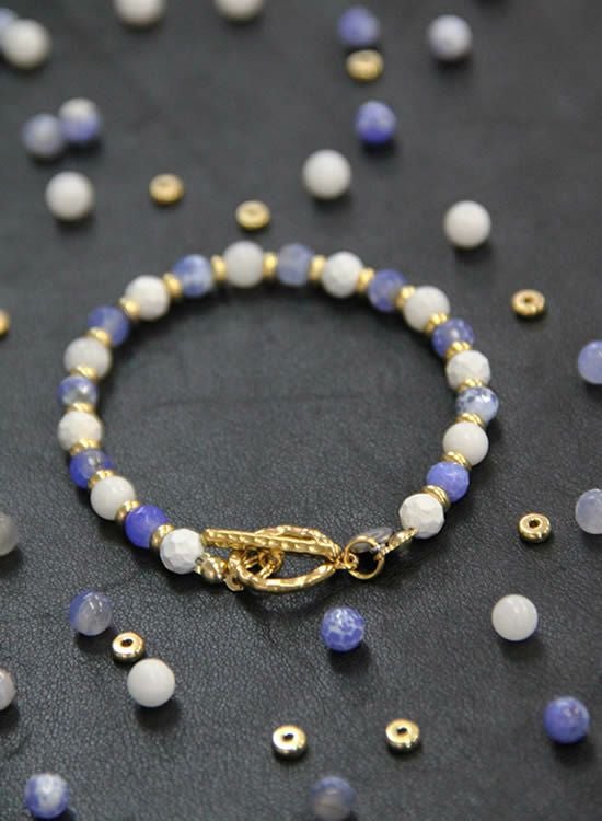 ネックレスの『ブルーファイヤーアゲート』が凄く人気だったのでブレスレットも作って欲しいとリクエストもあったので組んでみました。なかなか在庫が安定しない石なので完売も多いかもしれませんが凄く個性的でキレイな石なのでぜひ挑戦して欲しいです。