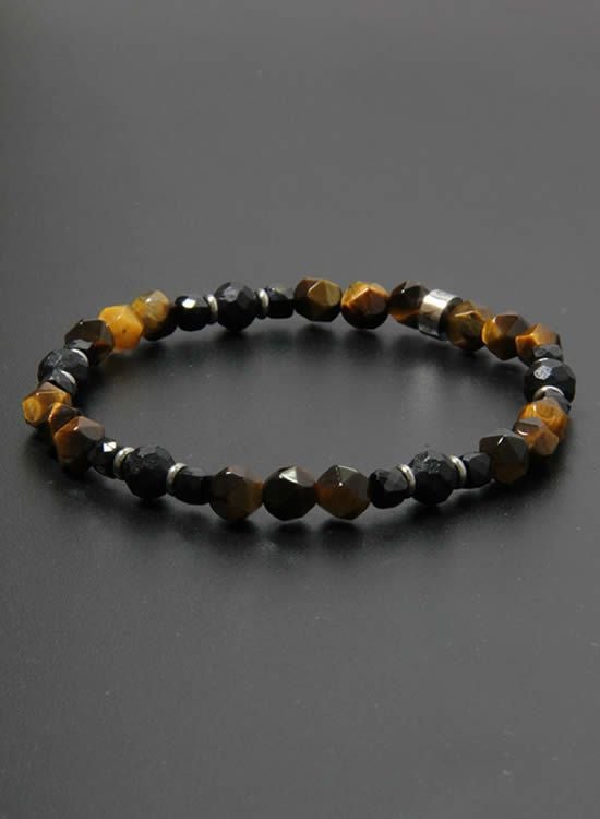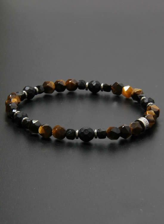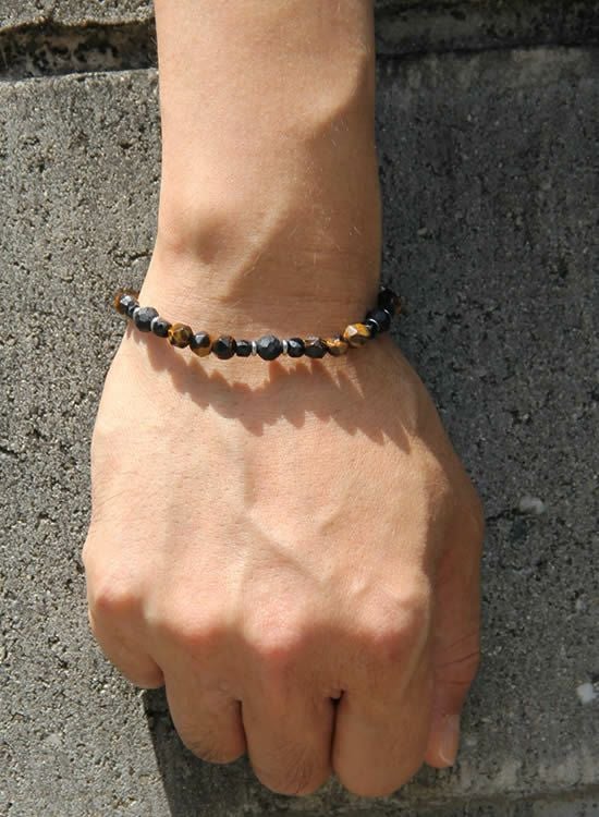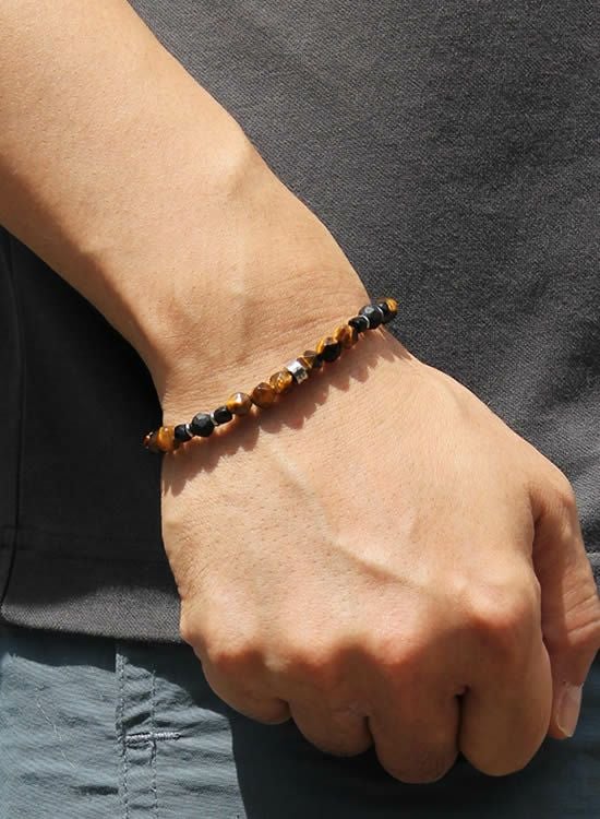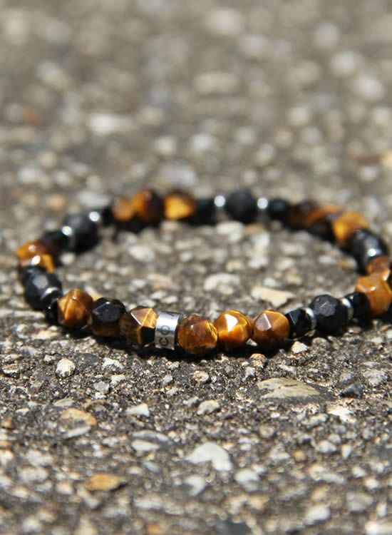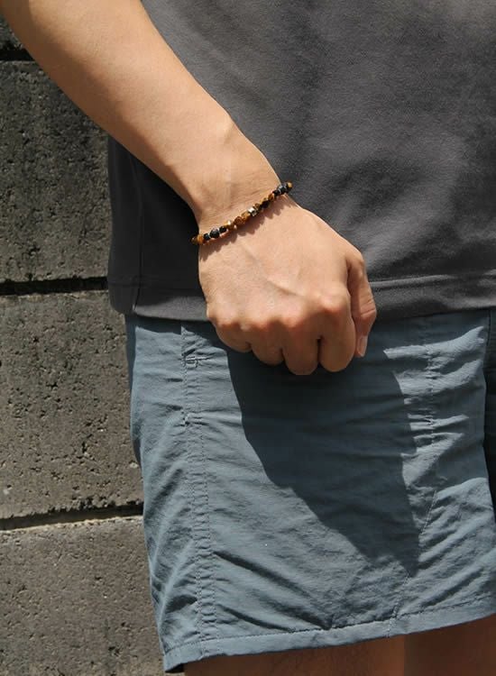 コレが登場するのを待っていたお客様も多いんじゃないでしょうか?ブルータイガーアイと並んで人気なのがタイガーアイです。この6mmの角・タイガーアイは石なのに木に見えるのがすっごく良くて!一年中ずっと着けれるアクセサリーなんです。タイガーアイが格好良く見えるようにシンプルに組みました。カッコイイ!! コチラの石はゴムを通す穴が小さくなっていて、通常のFORCE4の10mm玉ブレスレットに比べて通しているゴムが細くなっている為にゴムの強度を確保できませんでした。それでもゴムタイプが楽で使いやすいのが魅力で商品化に至りました。10mm玉のブレスレットより少し丁寧に扱って頂けると嬉しく思います。※よりゴムを伸ばさないように慎重に取扱い頂くようお願いします。また、ゴムのささくれ等を見つけた場合は早急にゴム交換をおススメします。