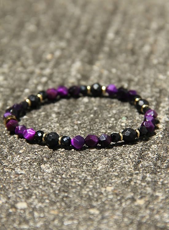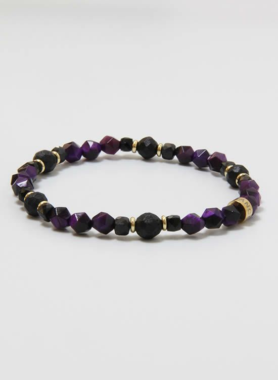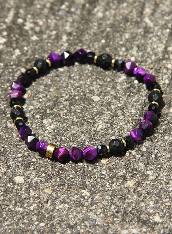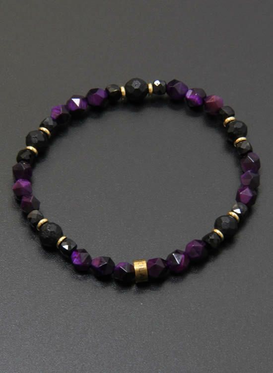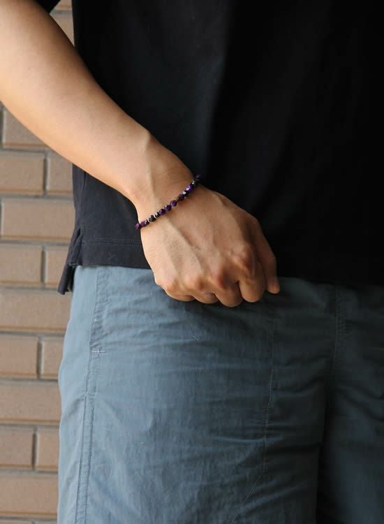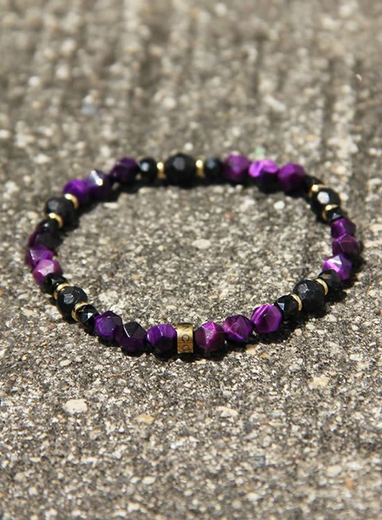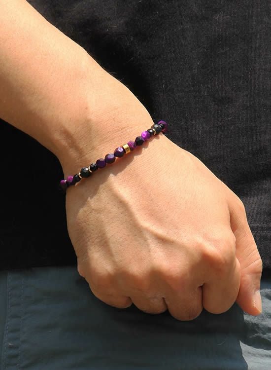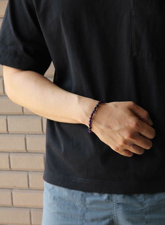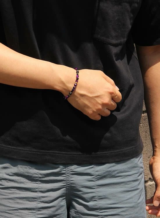 新しい6mm角・パープルタイガーアイが登場となります。これによって6mm角パープルを使っていたアイテムは全てコチラのカラーに変更となりましたので、興味がある方は以前の商品もチェックしてみて下さい。以前のパープルよりもよりムラサキになっております。新6mm角パープルもどうぞよろしくお願いいたします! コチラの石はゴムを通す穴が小さくなっていて、通常のFORCE4の10mm玉ブレスレットに比べて通しているゴムが細くなっている為にゴムの強度を確保できませんでした。それでもゴムタイプが楽で使いやすいのが魅力で商品化に至りました。10mm玉のブレスレットより少し丁寧に扱って頂けると嬉しく思います。※よりゴムを伸ばさないように慎重に取扱い頂くようお願いします。また、ゴムのささくれ等を見つけた場合は早急にゴム交換をおススメします。