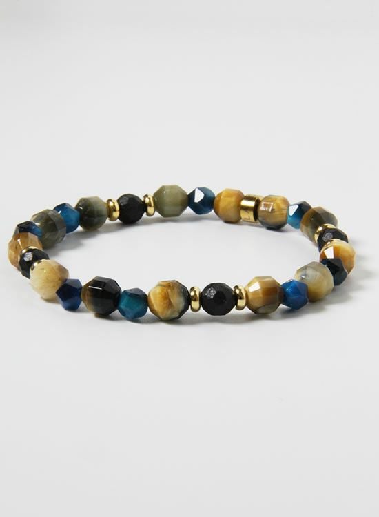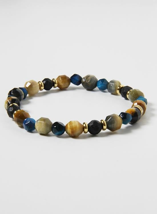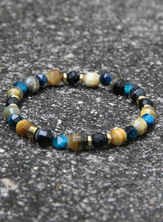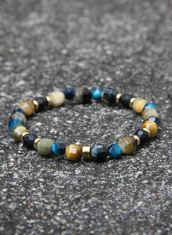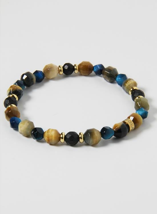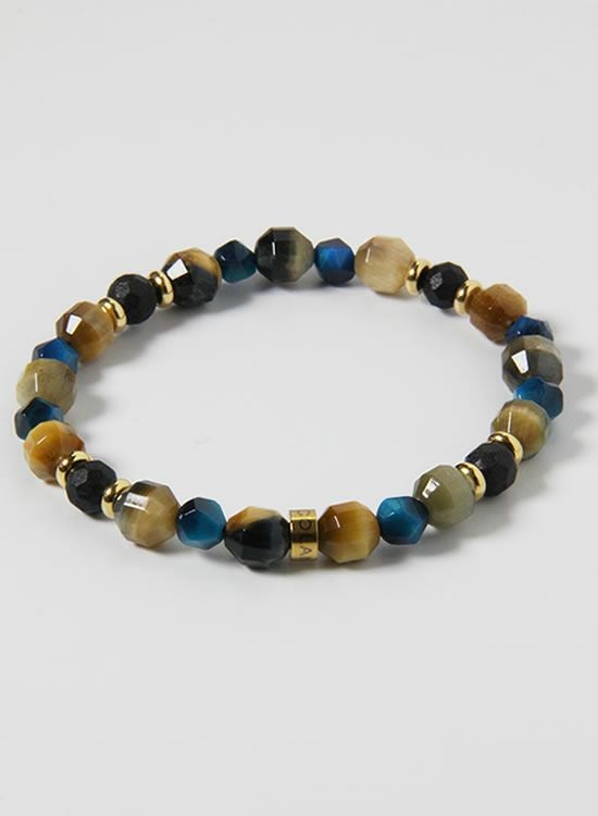 FORCE3 ブレスレット 8mmオーバル多面カット MIXタイガーアイ&角ブルータイガーアイ ゴムタイプ