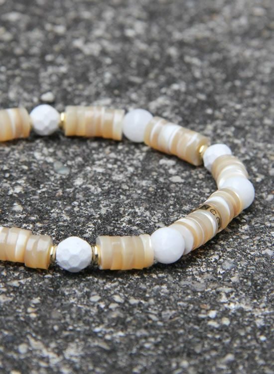春夏に向けて新たに『貝ビーズ』をブレスレットにしてみました~!!メチャクチャ夏っぽい!!すっごく爽やかでいいと思います。6mmって所がまたシンプルで凄くいいんです。貝ビーズの魅力を楽しんで頂ければ嬉しいです!!
