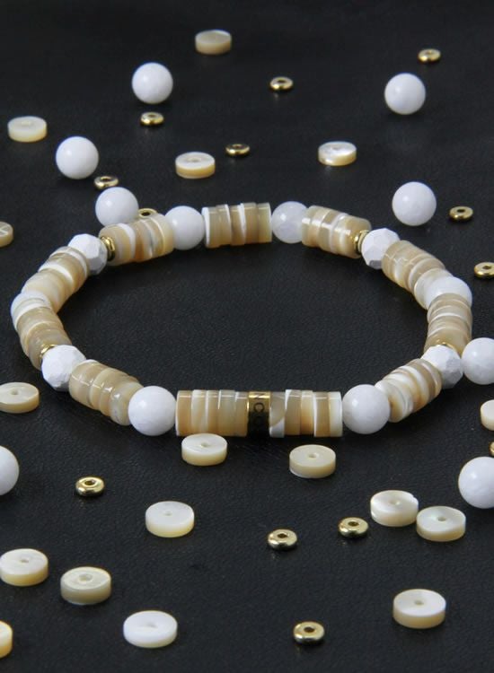 FORCE3 ブレスレット 6mm 貝ビーズ ゴムタイプ