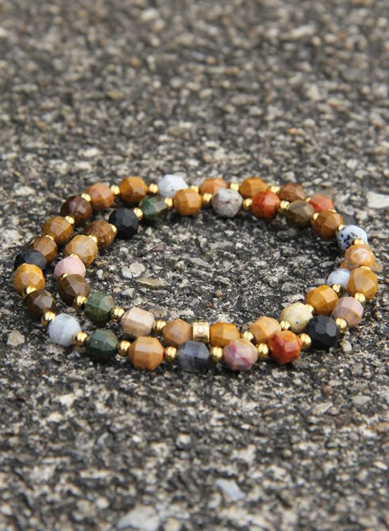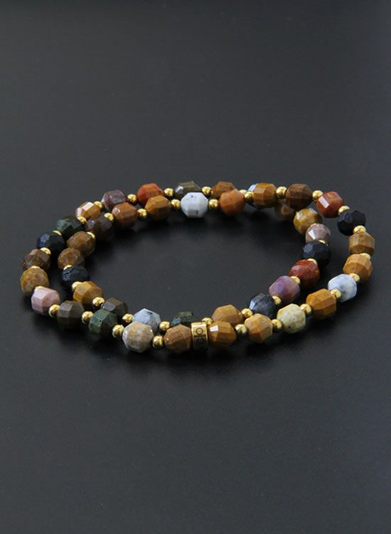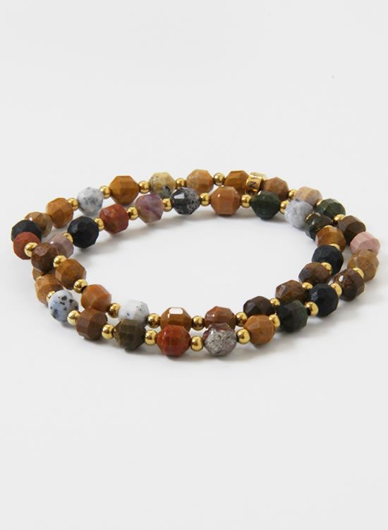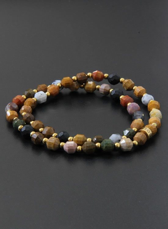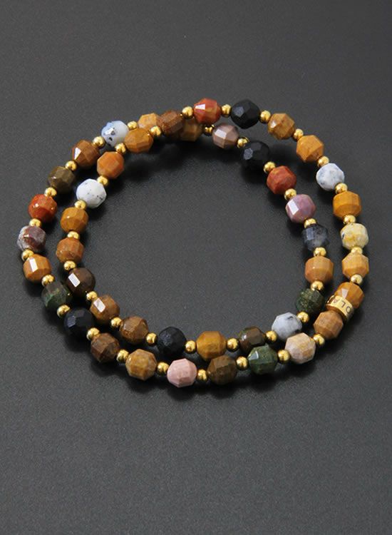 FORCE3 ブレスレット 6mmオーバル多面カット オーシャンジャスパー 2重巻き ゴムタイプ