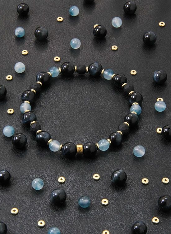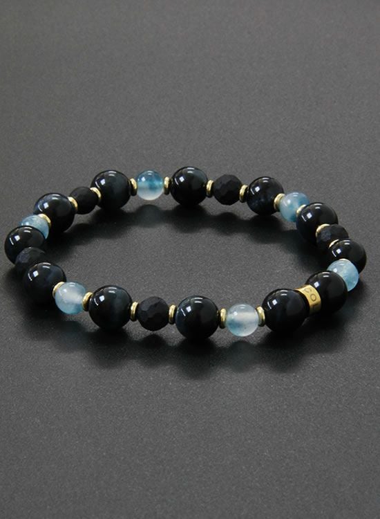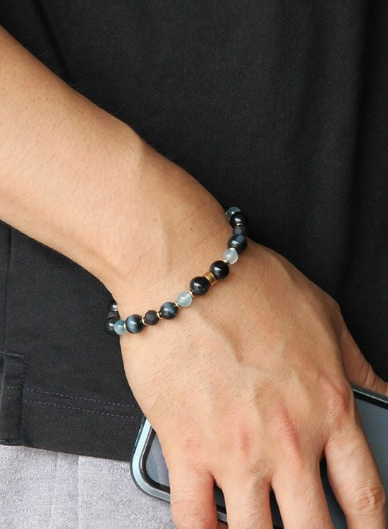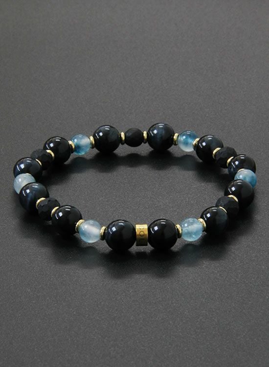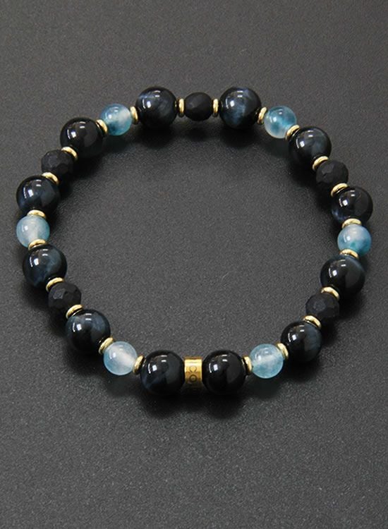 FORCE3 ブレスレット 8mmブラックタイガーアイ&翡翠ブルー ゴムタイプ