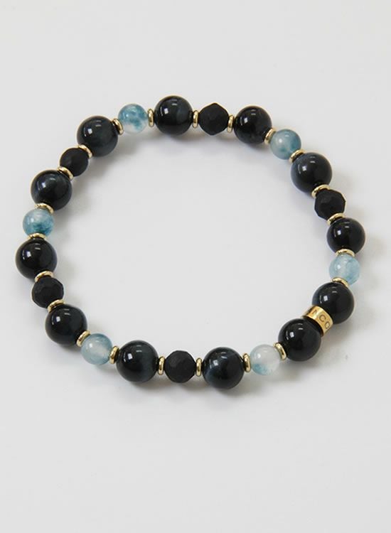 コランコランFORCE3(フォーススリー)ブレスレット 8mmブラックタイガーアイ&翡翠ブルー ゴムタイプ