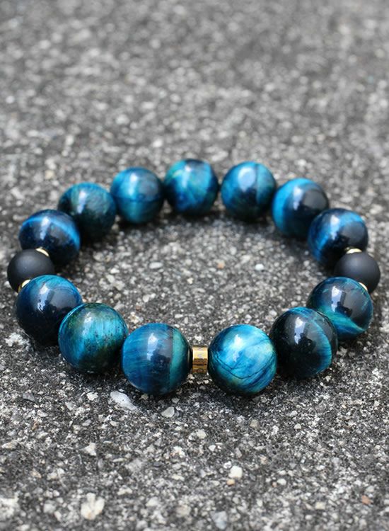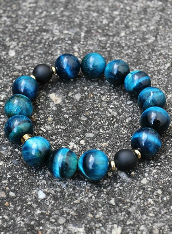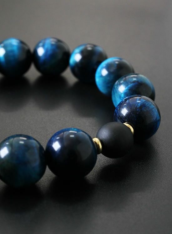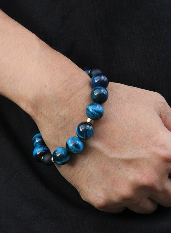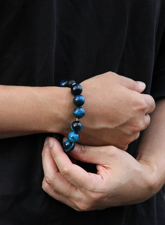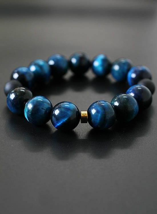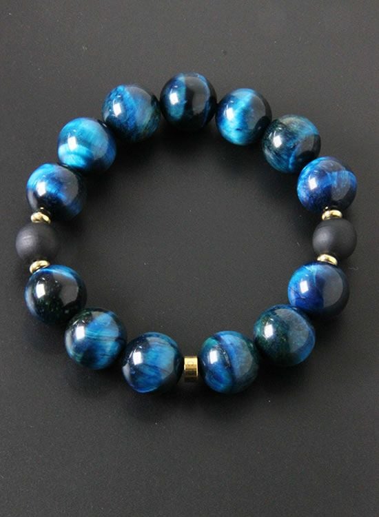 FORCE4ブレスレット 14mmブルータイガーアイ 【伸ばして脱着するゴムを使ったブレスレット】