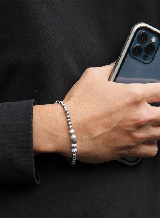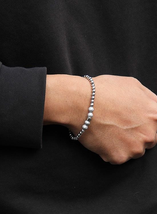 FORCE3 ブレスレット 4mmシルバーヘマタイト ゴムタイプ