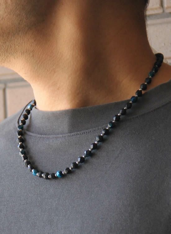 夏はTシャツにネックレスが定番でしょ?コランコランのFORCE3ネックレスの新色『角・ブルータイガーアイ』はいかがでしょうか?本当にキレイな角・ブルータイガーアイを入手出来たのでネックレスに散りばめました。ブラックの中でも映えるブルーの石が輝いて見えます。ブルーなので爽やかで夏らしい1本に仕上がりました。