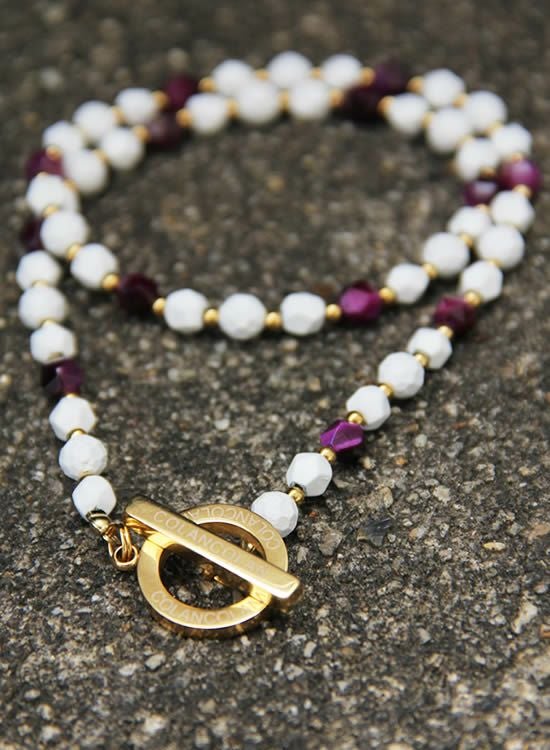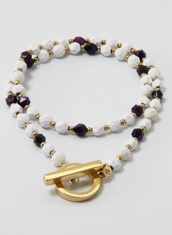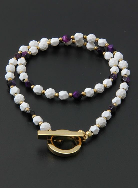 ブレスレットを作った時に『あっ!コレはネックレスも作ろう!』と決めてました。ホワイトとパープルとゴールドの組合せはインパクトが凄かった!