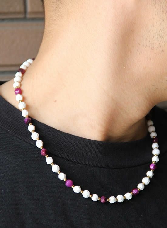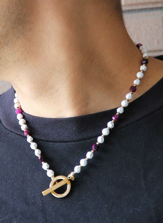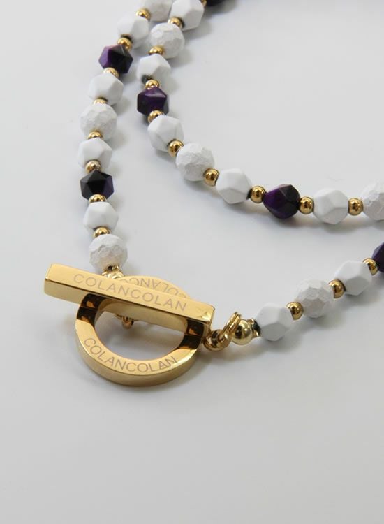 【COLANCOLANのFORCE3の新作】角・パープルタイガーアイにホワイトとゴールドを合わせたネックレスが登場
