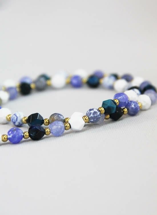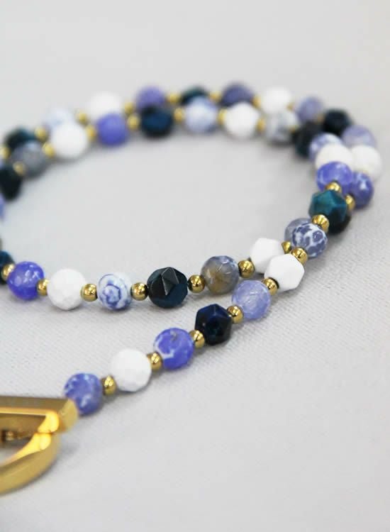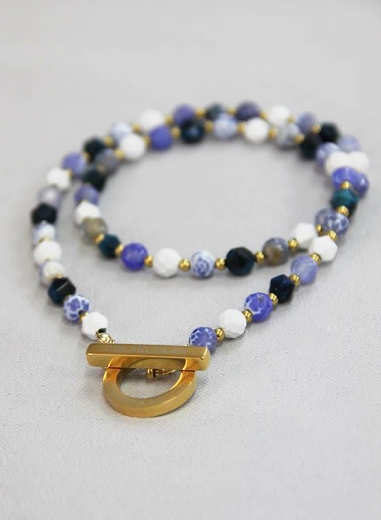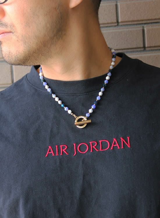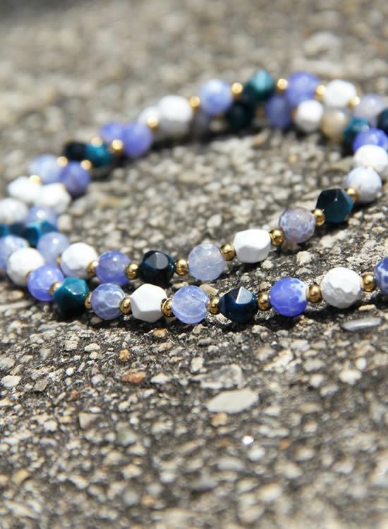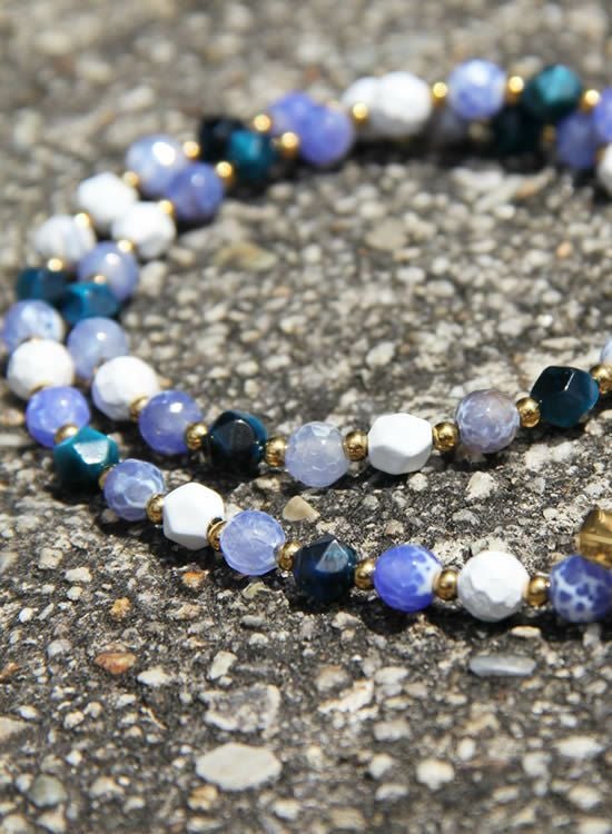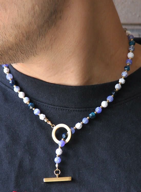今までのFORCE3ネックレスには無かった見た目!ブルーファイヤーアゲートと言う石を見つけてそのキレイな模様を最大限生かしたネックレスが作りたくてデザインしました。角ブルータイガーアイも混ぜる事でバランスを整えております。夏らしい爽やかなネックレスをぜひご検討下さい。