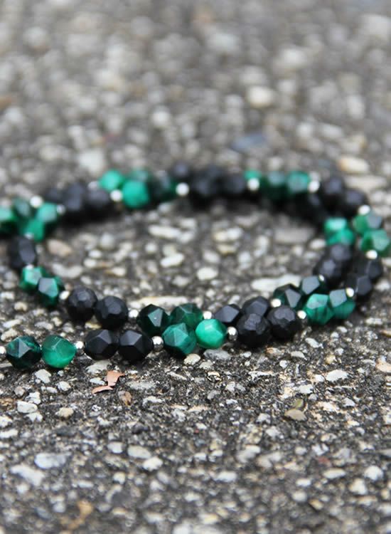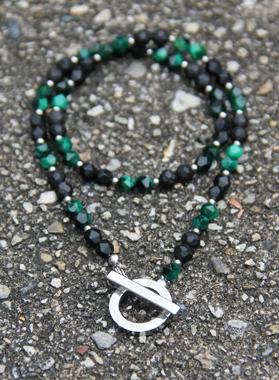 やっぱりネックレスは黒系が人気なので、角・グリーンタイガーアイをいつもとは違う配列(2連ダブル)で組んでみました。黒玉とグリーンタイガーアイとの相性も良くてコレは使いやすい。