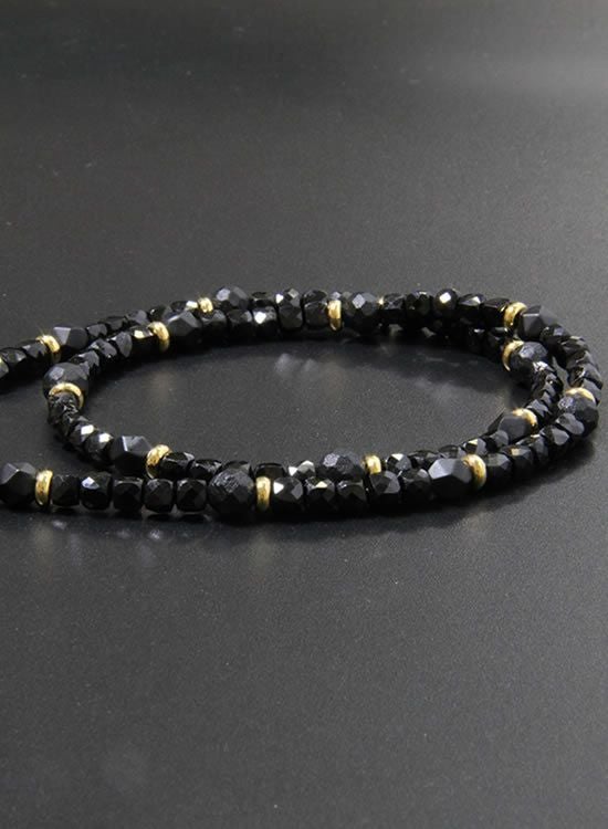 ちょっと前に流行っていたブラックスピネルをコランコラン流にアレンジしてネックレスにしてみました。4mmの細いネックレスにゴールドのパーツを入れる事で高級感も出て凄く使いやすいネックレスに仕上がりました。
