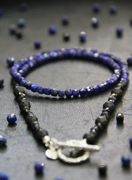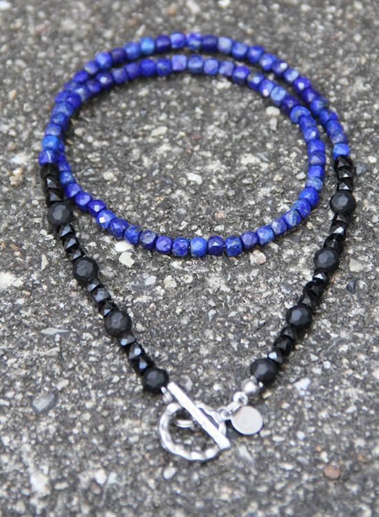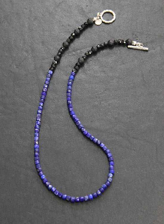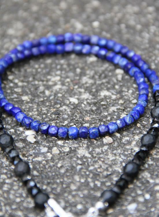 4mmの細いネックレスシリーズに『ラピスラズリ』が登場です。キレイな石を仕入れる事ができました~!この4mm細いシリーズはいつもより長めのサイズがいいかもしれません。撮影ではLサイズを着用しましたが買うならLLサイズを買うと思う。もっと長いのが欲しいお客様は特注サイズを別途お見積り致しますのでメール頂ければと思います。