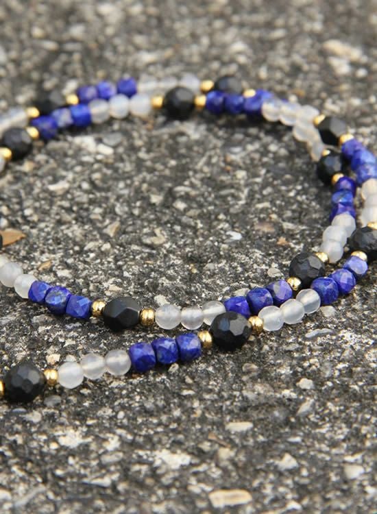 【FORCE3】4mmラピスラズリ&グレーアゲート(ゴールド・ブラック) ネックレス