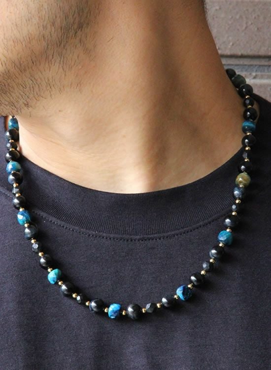 【再入荷】【数量限定テスト販売】コランコランFORCE3(フォーススリー) 8mmブラックタイガーアイ&多面体ブルータイガーアイ (ゴールド・ブラック) ネックレス 【送料無料】