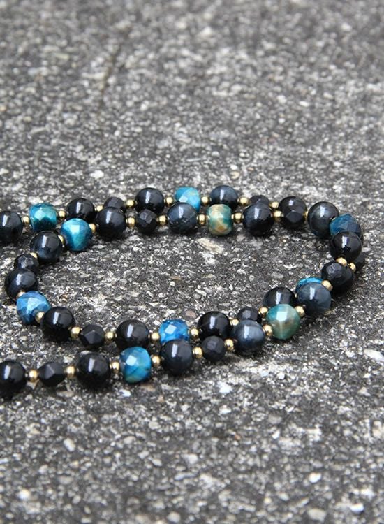 【FORCE3】8mmブラックタイガーアイ&多面体ブルータイガーアイ(ゴールド・ブラック) ネックレス