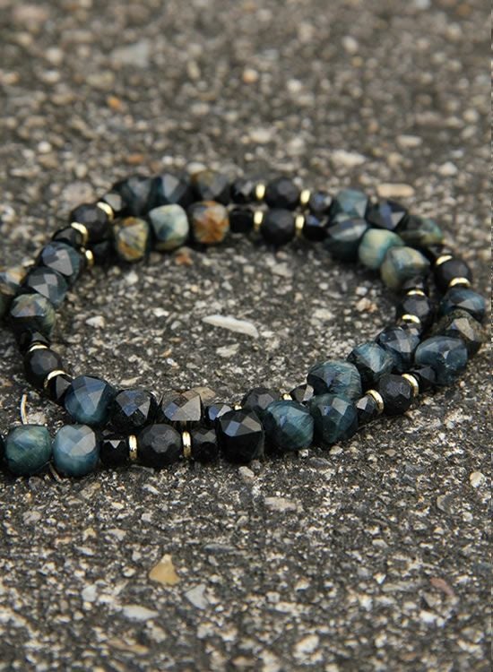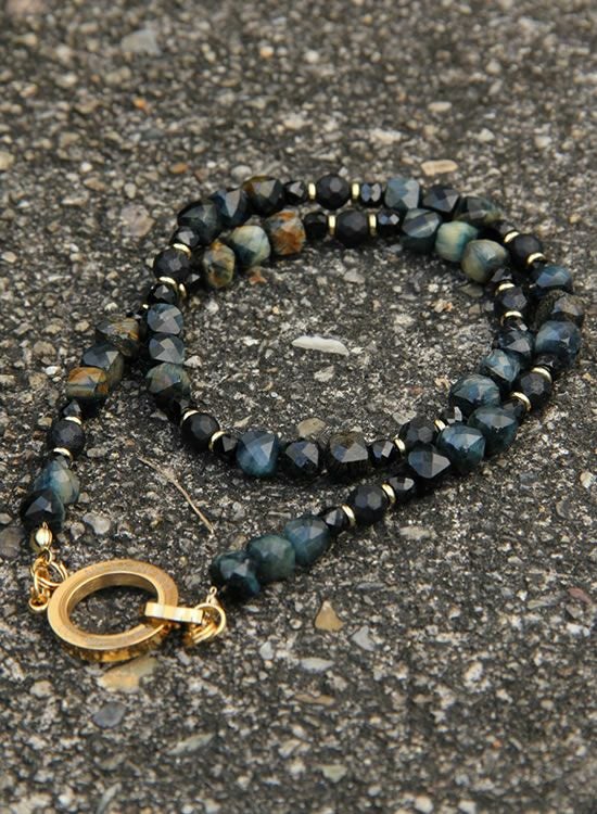 コランコランFORCE5(フォースファイブ) 8mm多面体キューブ ダークブルータイガーアイ (ゴールド・ブラック) ネックレス 【送料無料】