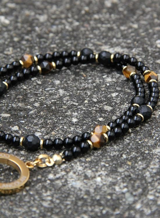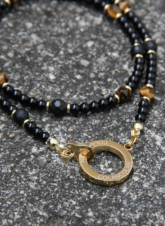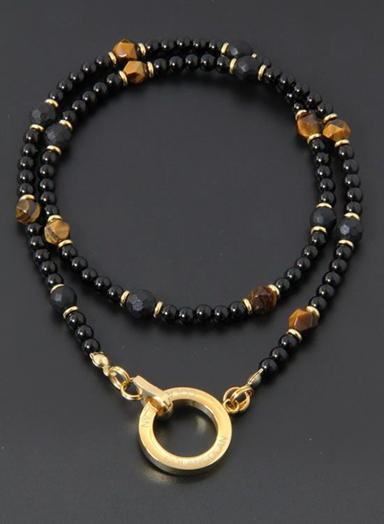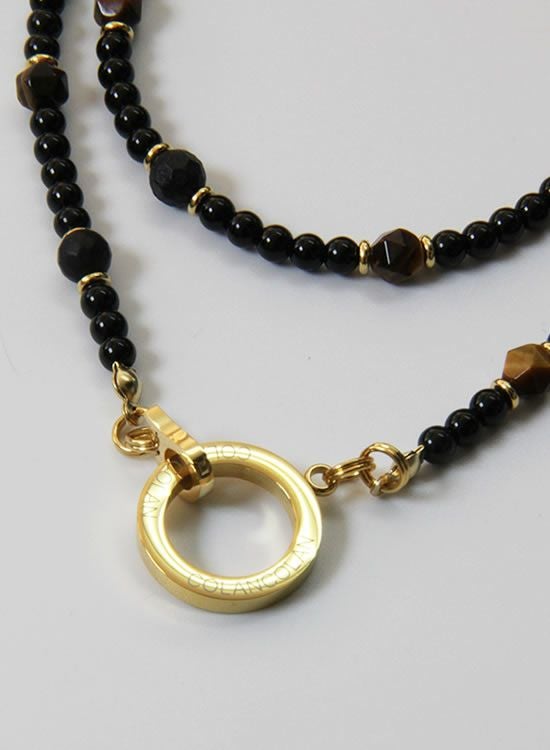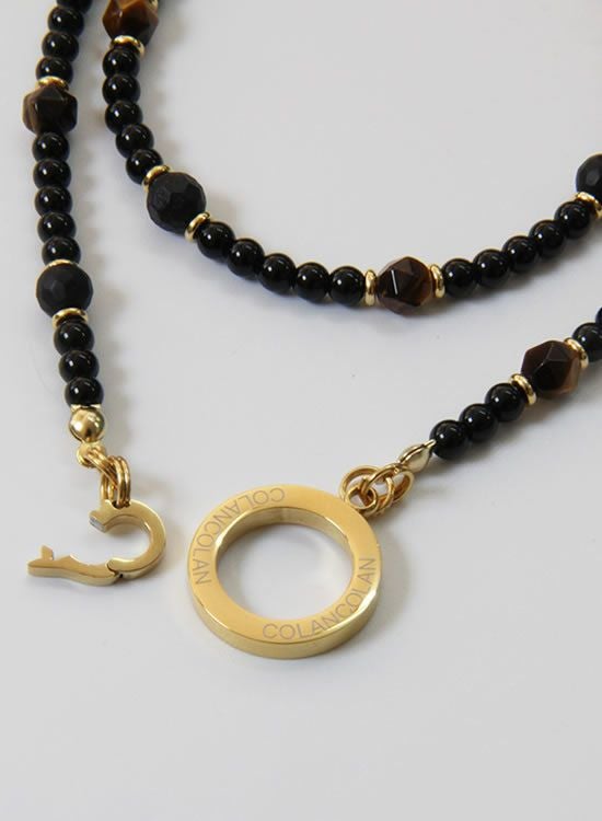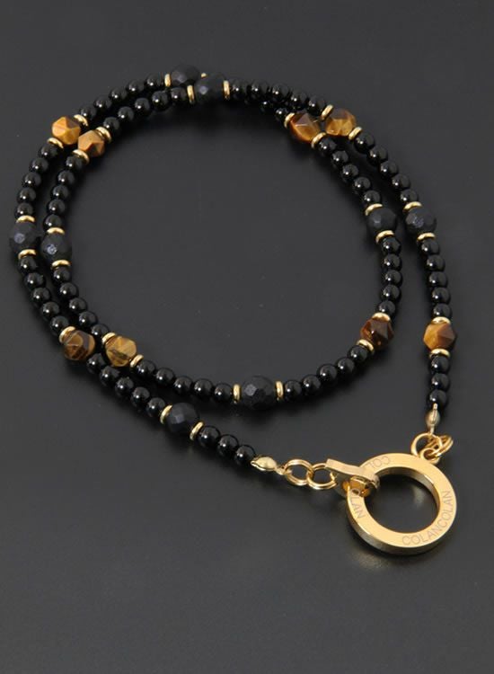 【再入荷】【数量限定テスト販売】コランコランFORCE5(フォースファイブ) ブラックストーン&6mm角イエロータイガーアイ (ゴールド・ブラック) ネックレス 【送料無料】
