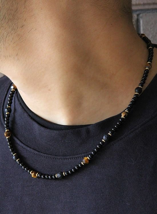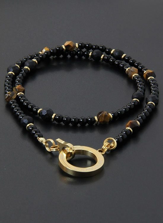【新パーツ】【FORCE5】 ブラックストーン&6mm角イエロータイガーアイ (ゴールド・ブラック) ネックレス