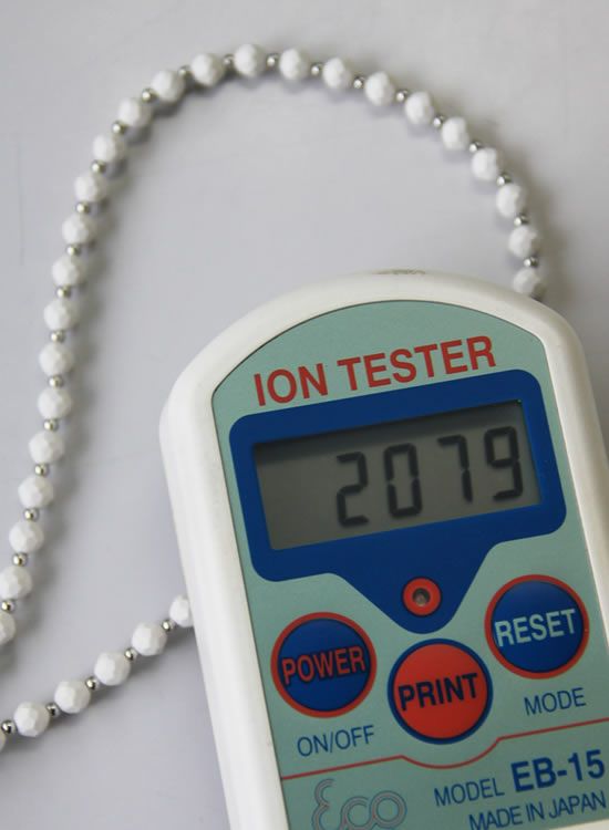 写真はFORCE2をマイナスイオンテスターで計測した結果になります。コランコランの中でもトップクラスの放出量を誇ります。放出は半永久的に持続します。