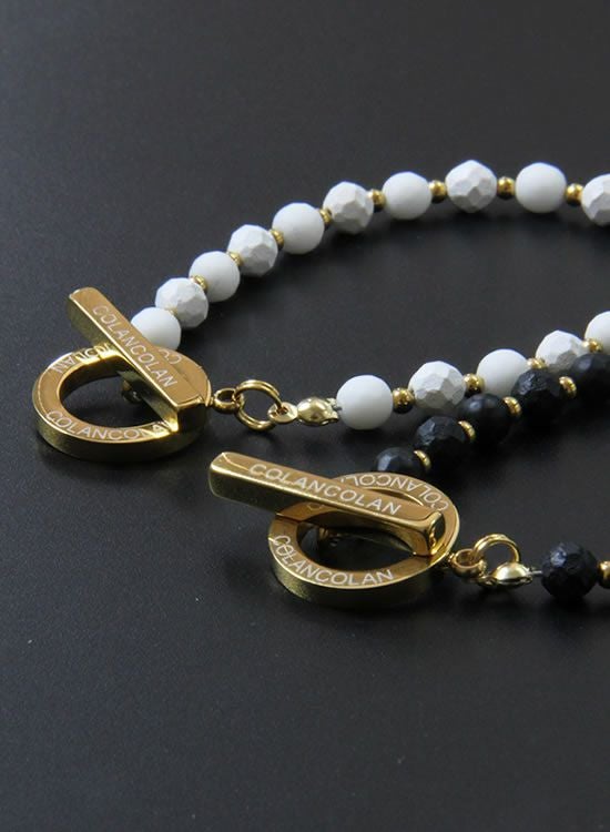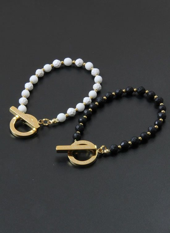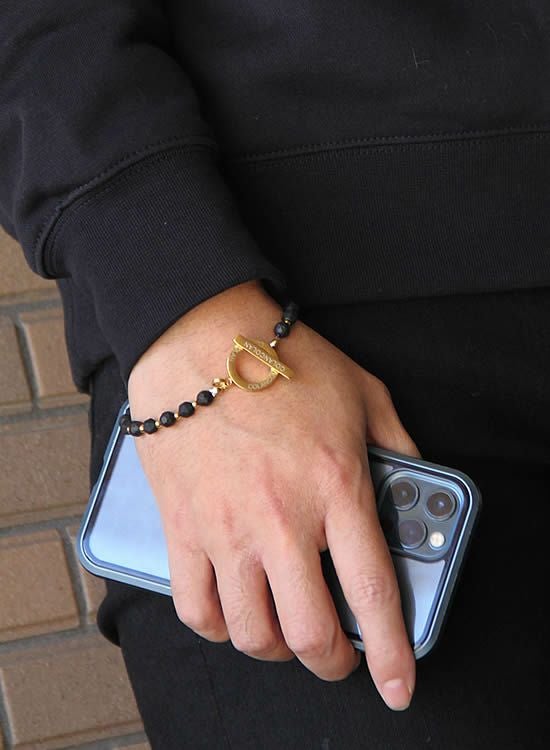 サイズ:全長表記をしておりますが、多面体セラミックパーツの大きさが一定ではない為、5mm程前後いたします。写真のモデルは手首サイズ17㎝でLサイズ(23㎝)を着用しています。