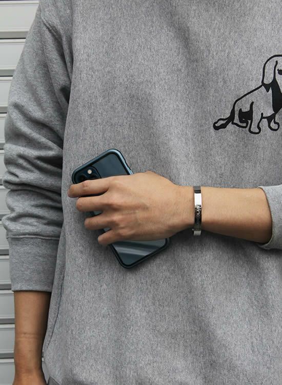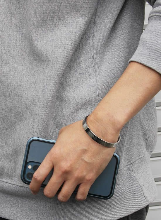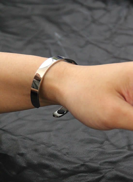 バングルなので本体の間口を広げたり狭くすることで若干のサイズ調整はできますが、