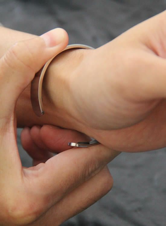 ※脱着は手首から装着してください。外す時も同様に手首から外すとスムーズです。指先から無理に通すと怪我や破損の原因となります。