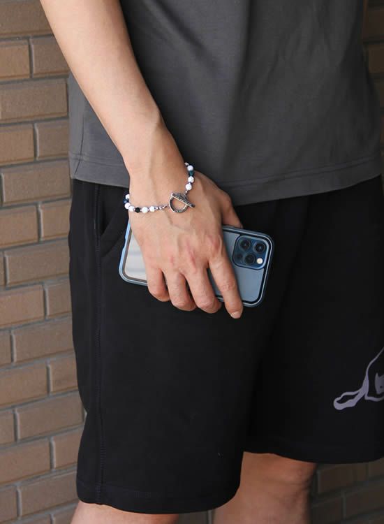サイズ:全長表記をしておりますが、多面体セラミックパーツの大きさが一定ではない為、5mm程前後いたします。写真のモデルは手首サイズ17㎝でLサイズ(23㎝)を着用しています。