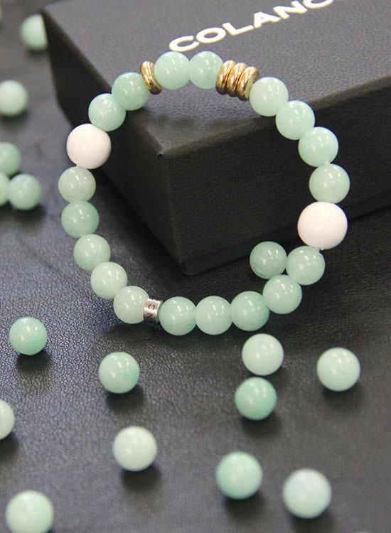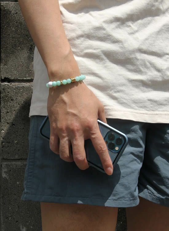 今回のアマゾナイトAでは8mm玉を採用しています。この爽やかな色に魅了されてほしい!太陽の光だと凄くキレイな色になるんです。真夏でも爽やかに着けられる事間違いない!!男性も女性にもおススメです。