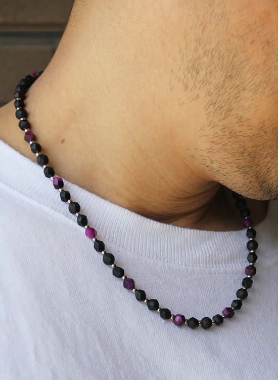 夏はTシャツにネックレスが定番でしょ!コランコランのFORCE3ネックレスの新色『角・パープルタイガーアイ』はいかがでしょうか?パープルタイガーアイにブラックのコランコラン鉱石を組み合わせたネックレスです。黒にパープルがメチャクチャ合う!!シンプルに爽やかにパープルを散りばめたのでTシャツが何色でも合わせやすく着けやすいカラーになりました。ぜひご検討下さい。