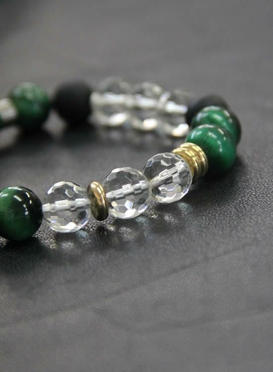 【再入荷】【数量限定テスト販売】コランコランFORCE4(フォースフォー)・水晶&グリーンタイガーアイ ブレスレット