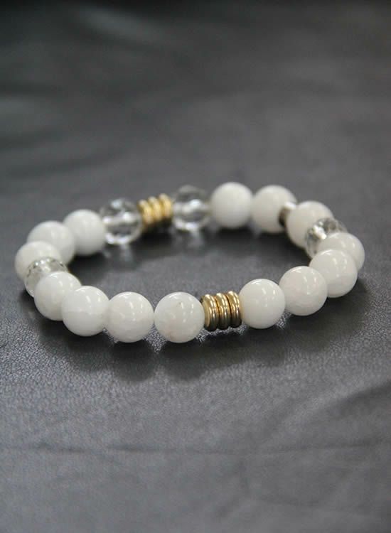 数量限定テスト販売FORCE4ブレスレット・ホワイトジェイド 【伸ばして脱着するゴムを使ったブレスレット】