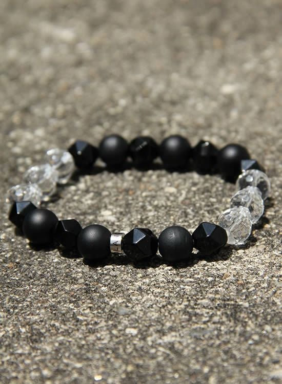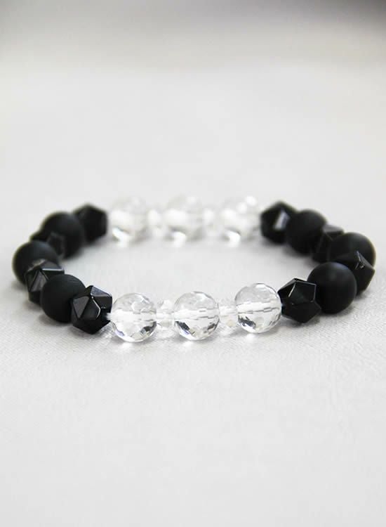 数量限定テスト販売FORCE4ブレスレット・水晶&ブラックMIX 【伸ばして脱着するゴムを使ったブレスレット】