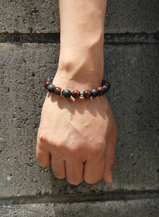 FORCE4ブレスレット・10mm溶岩&レッドタイガーアイ 【伸ばして脱着するゴムを使ったブレスレット】