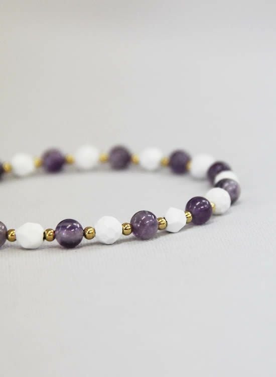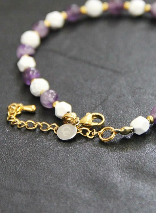 FORCEシリーズのアンクレットが大好評なのでアメジストをアンクレットとして組んでみました。アメジスト特有の透明なムラサキとゴールドビーズの相性が良くて凄くキレイです。夏はこういうアンクレット着けたくなりますよね~。