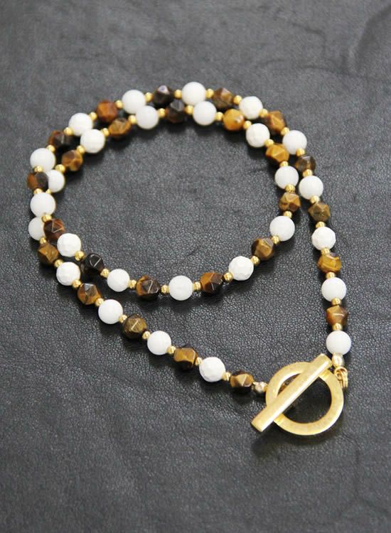 【FORCE3】角・タイガーアイ&ホワイトジェイド ネックレス