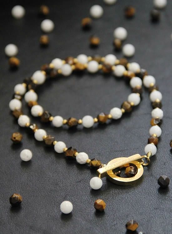 6mmの角タイガーアイを使って夏っぽいネックレスを組んでみました。夏はやっぱりホワイトな石と合わせる事で涼し気になっていくので、ホワイトジェイドと組み合わせて爽やかになるように組みました。タイガーアイが石なんだけど木みたいに見えてとってもいい!!