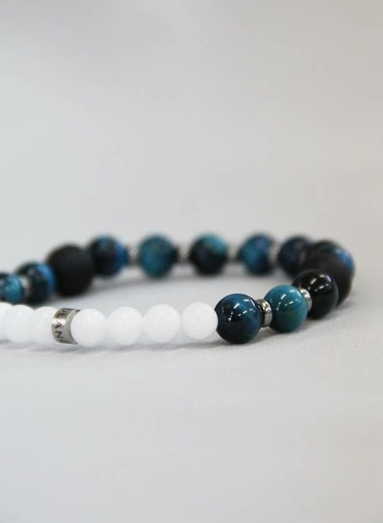 FORCE4ブレスレット 8mmブルータイガーアイ&ホワイトジェイド 【伸ばして脱着するゴムを使ったブレスレット】