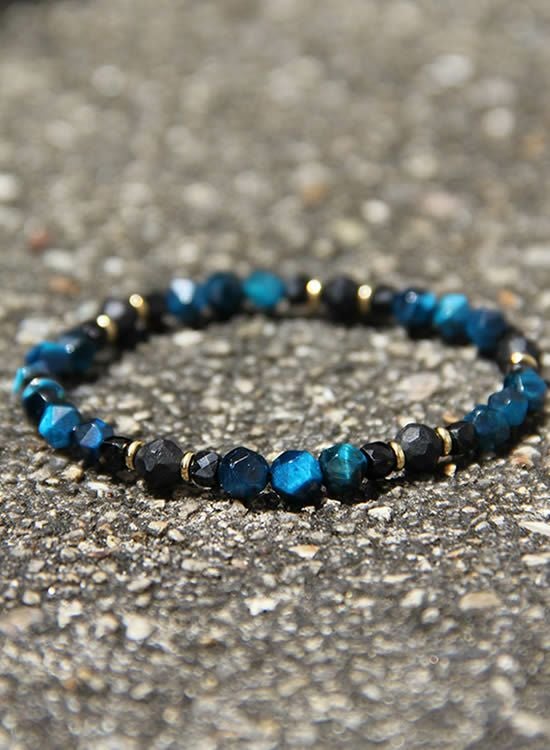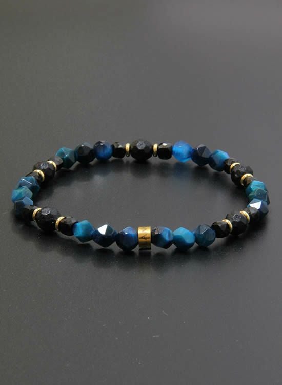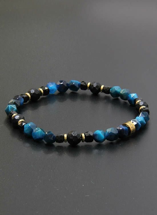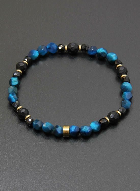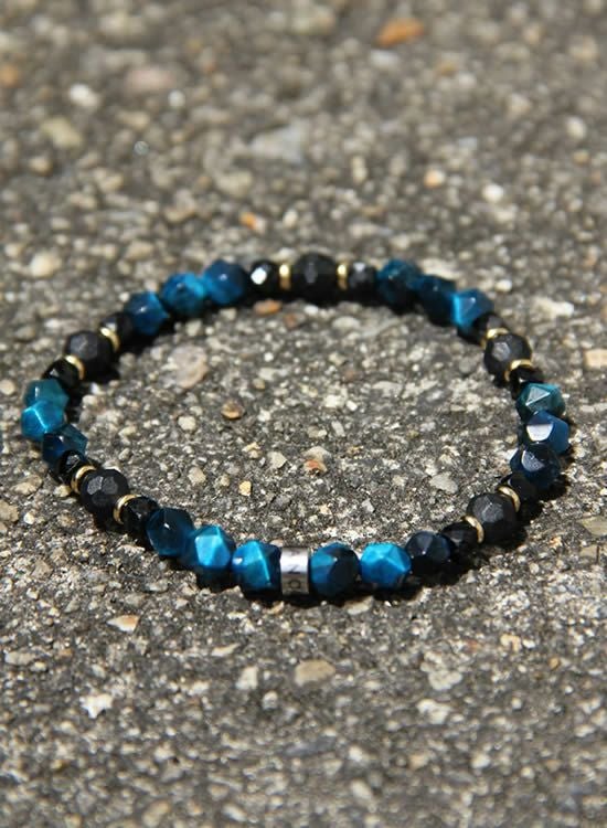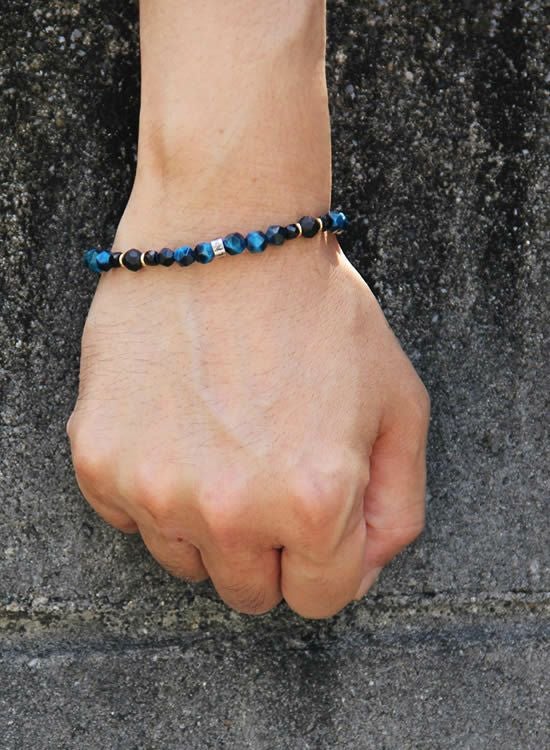 なんで今までやらなかったのか不思議なんですが!6mmの角ブルータイガーアイでブレスレットを作りました。店長の友人がデザインしてみたいと会社に遊びにきた時に作ったブレスを改良して商品化になりました。常に先入観が無いフラットなアイディアは大切にしなきゃいけないと思った。細目ブレスなんだけど丁度いい大きさで凄く使いやすいと思います!!ナイスデザイン!! コチラの石はゴムを通す穴が小さくなっていて、通常のFORCE4の10mm玉ブレスレットに比べて通しているゴムが細くなっている為にゴムの強度を確保できませんでした。それでもゴムタイプが楽で使いやすいのが魅力で商品化に至りました。10mm玉のブレスレットより少し丁寧に扱って頂けると嬉しく思います。※よりゴムを伸ばさないように慎重に取扱い頂くようお願いします。また、ゴムのささくれ等を見つけた場合は早急にゴム交換をおススメします。