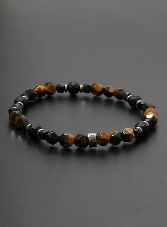 コレが登場するのを待っていたお客様も多いんじゃないでしょうか?ブルータイガーアイと並んで人気なのがタイガーアイです。この6mmの角・タイガーアイは石なのに木に見えるのがすっごく良くて!一年中ずっと着けれるアクセサリーなんです。タイガーアイが格好良く見えるようにシンプルに組みました。カッコイイ!! コチラの石はゴムを通す穴が小さくなっていて、通常のFORCE4の10mm玉ブレスレットに比べて通しているゴムが細くなっている為にゴムの強度を確保できませんでした。それでもゴムタイプが楽で使いやすいのが魅力で商品化に至りました。10mm玉のブレスレットより少し丁寧に扱って頂けると嬉しく思います。※よりゴムを伸ばさないように慎重に取扱い頂くようお願いします。また、ゴムのささくれ等を見つけた場合は早急にゴム交換をおススメします。