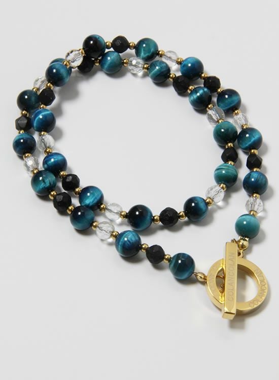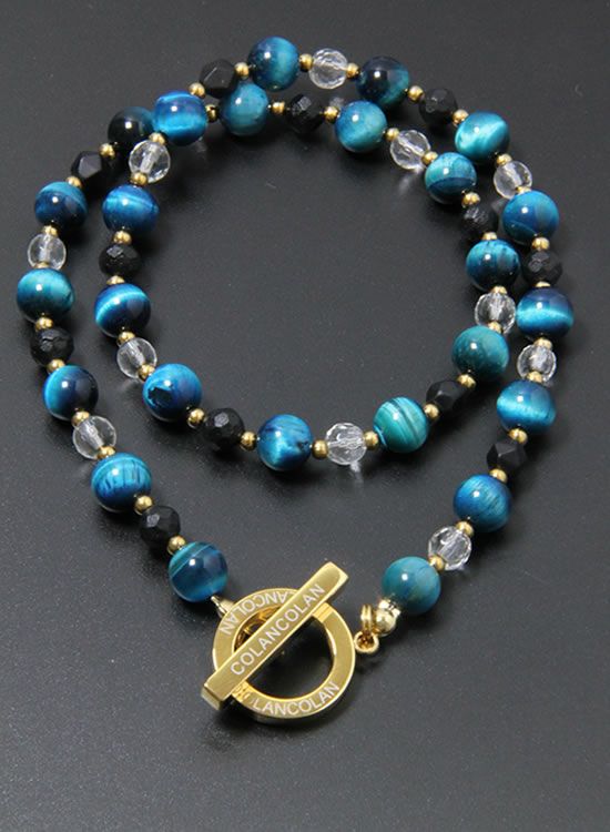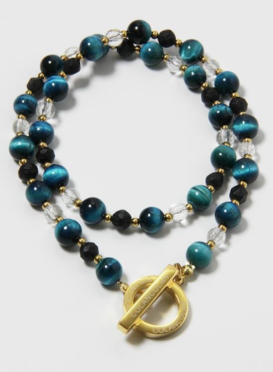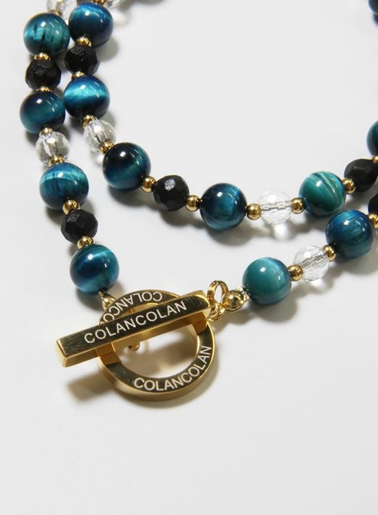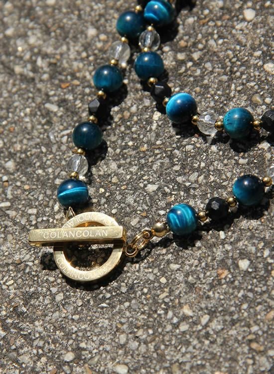 【再入荷】【数量限定テスト販売】コランコランFORCE3(フォーススリー)8mmブルータイガーアイ&水晶(ゴールド・ブラック) ネックレス 【送料無料】