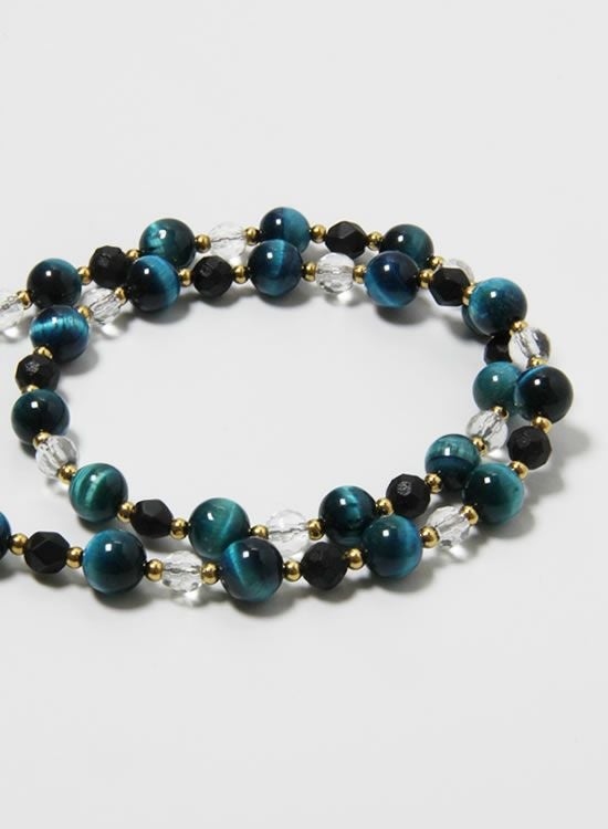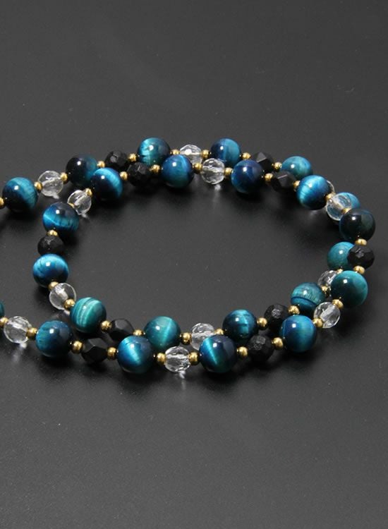 【FORCE3】8mmブルータイガーアイ&水晶 ネックレス
