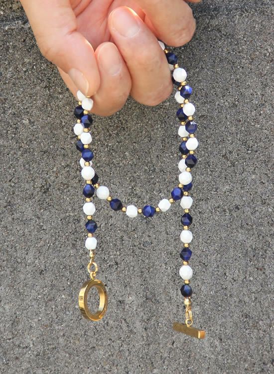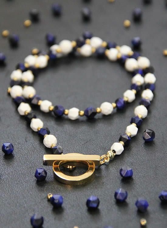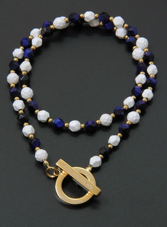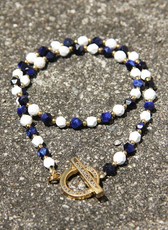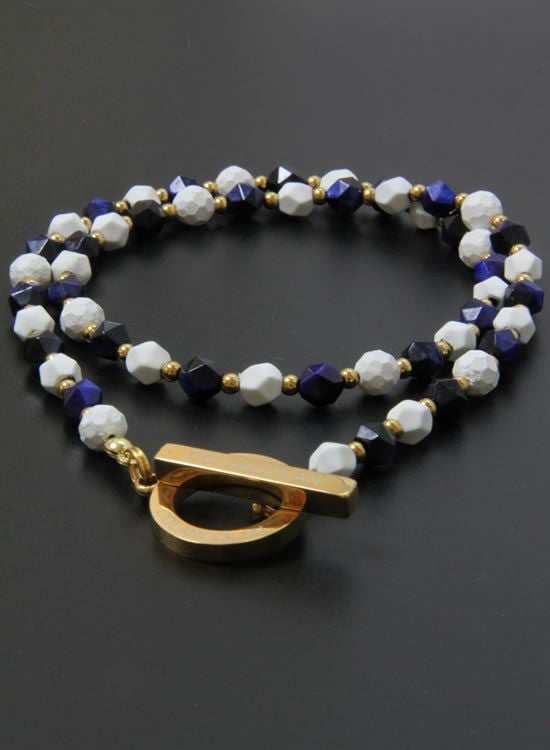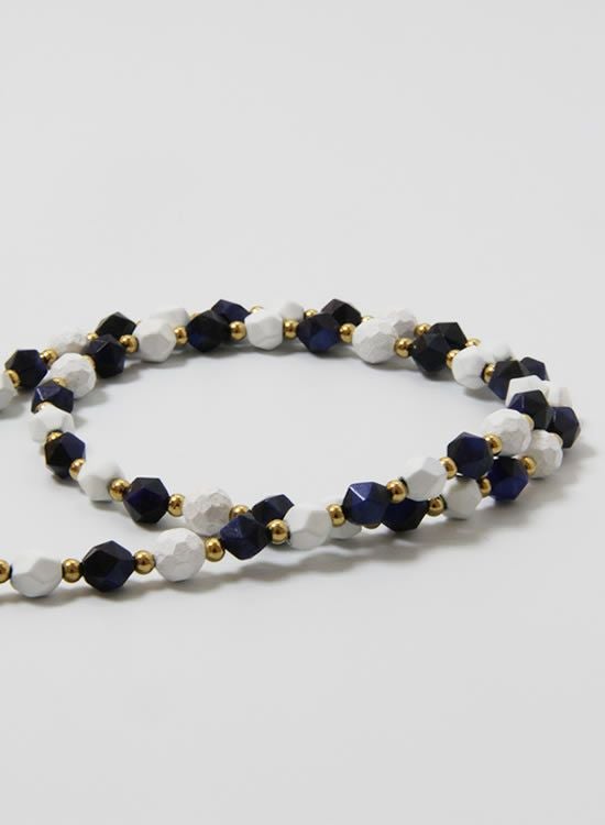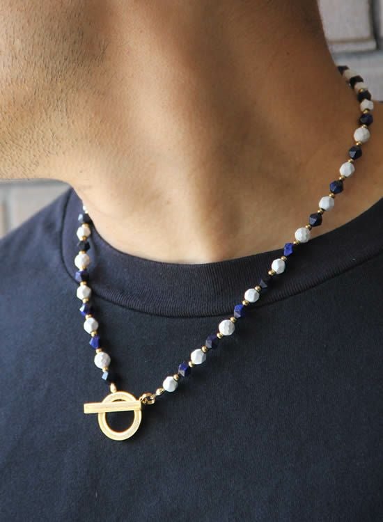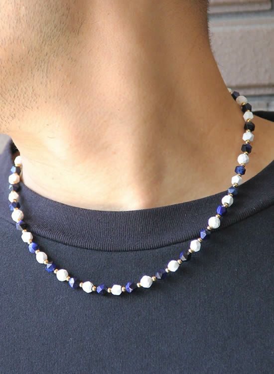 6mm角・ネイビータイガーアイが凄くキレイだったのでネックレスでも組んでみました!ホワイトとゴールドパーツで少し派手目にしたつもりだけど、全然嫌な派手さじゃなくて夏らしい色合いになっています。ネイビーがカッコイイ!!