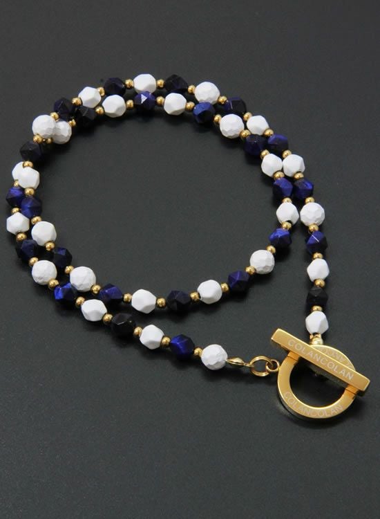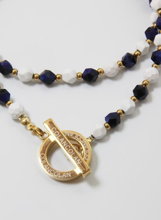 【再入荷】【数量限定テスト販売】コランコランFORCE3(フォーススリー)角・ネイビータイガーアイ(ゴールド・ホワイト) ネックレス 【送料無料】