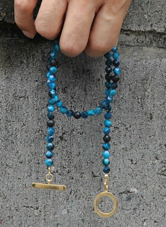 6mm角ブルータイガーアイをメインにしたネックレスを作ってみました。今までなぜ作らなかったのか不思議なくらいカッコイイ!!今回はゴールドのパーツを採用していて、ビーズ等は使わずにブルータイガーアイを沢山使ってデザインしました。ブルー好きにはすっごくおススメです。